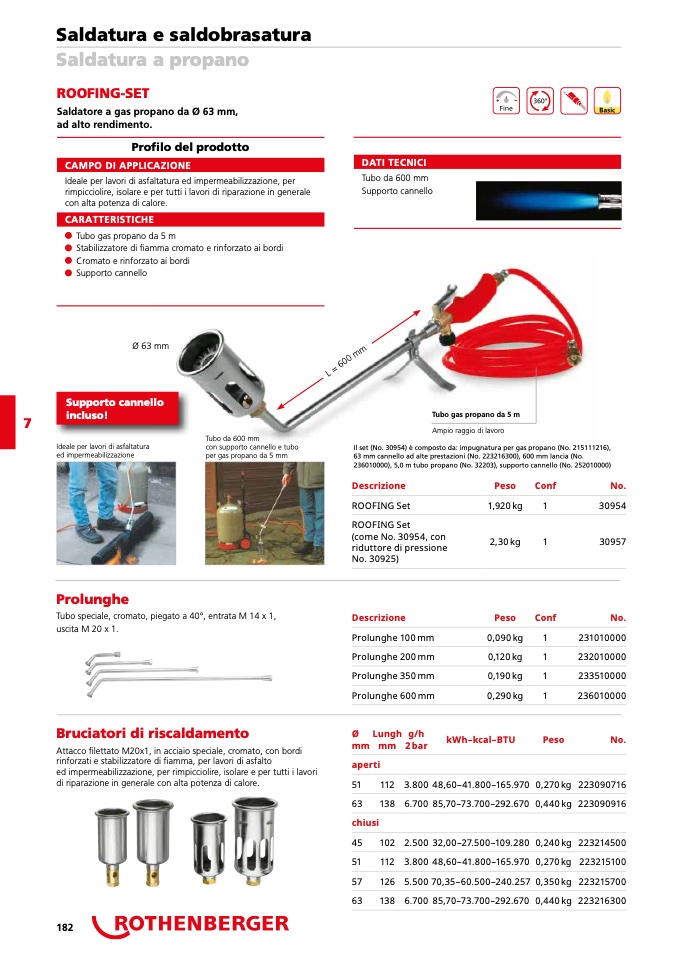 236010000), 5,0 m tubo propano (No. 32203), supporto cannello (No. 252010000)