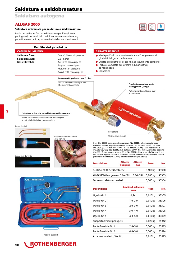 (No. 35311), tubi gas con attacchi 2,5 m (No. 35221), chiavi a forcella SW 14 x 19 mm