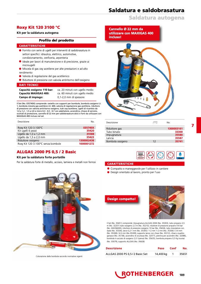 Il Set (No. 35651) comprende: Impugnatura ALLGAS 2000 (No. 35303), tubo propano 2,5