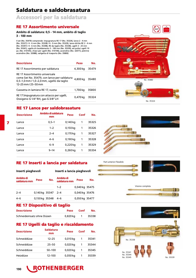 (No. 35347) / 4 - 6 mm (No. 35348), RE da taglio (No. 35338), ugelli 3 - 25 mm
