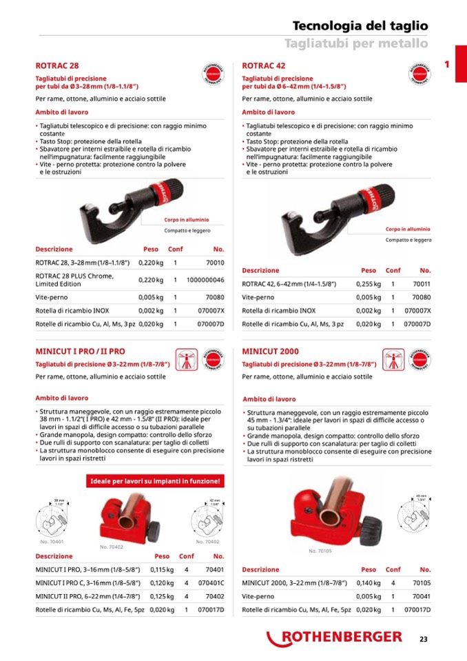 per tubi da Ø 3–28 mm (1/8–1.1/8′′)