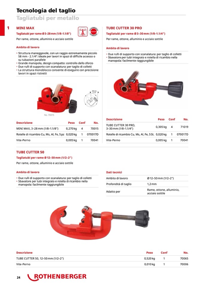 Tagliatubi per rame Ø 3–28 mm (1/8–1.1/8′′)