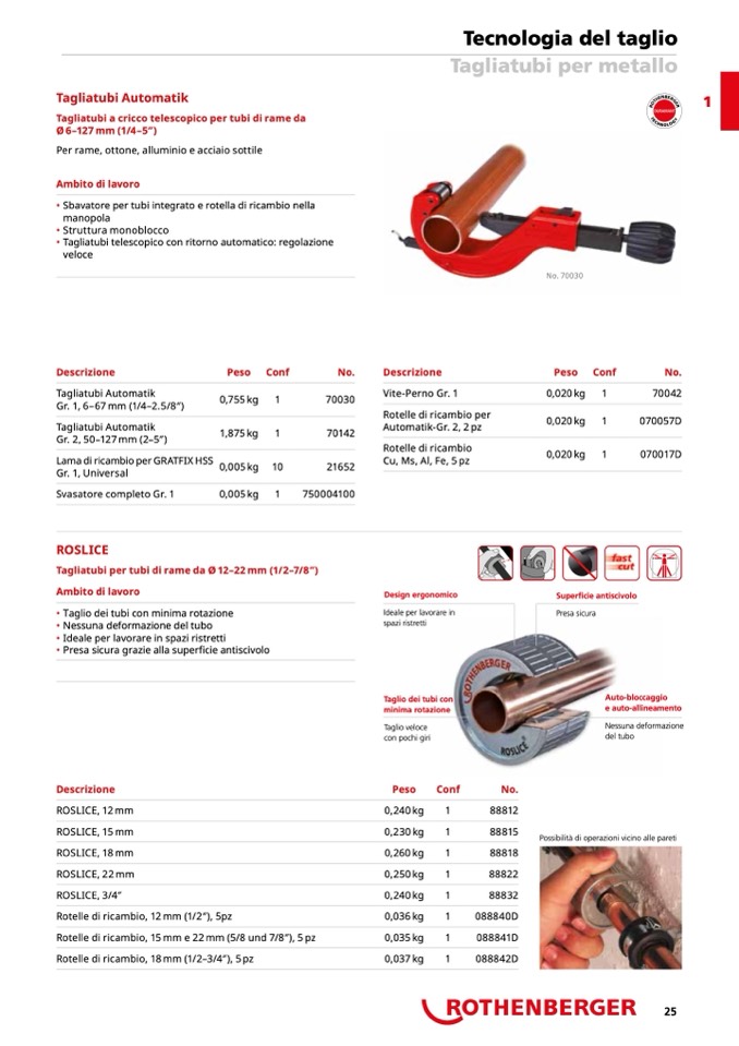 Tagliatubi per tubi di rame da Ø 12–22 mm (1/2–7/8′′)