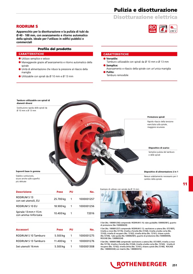 Il Set (No. 1000001257) comprende: RODRUM S 13, raschiatore a catena (No. 072185F),