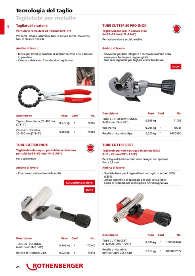 Per rame, ottone, alluminio, tubi in acciaio sottile, ma anche