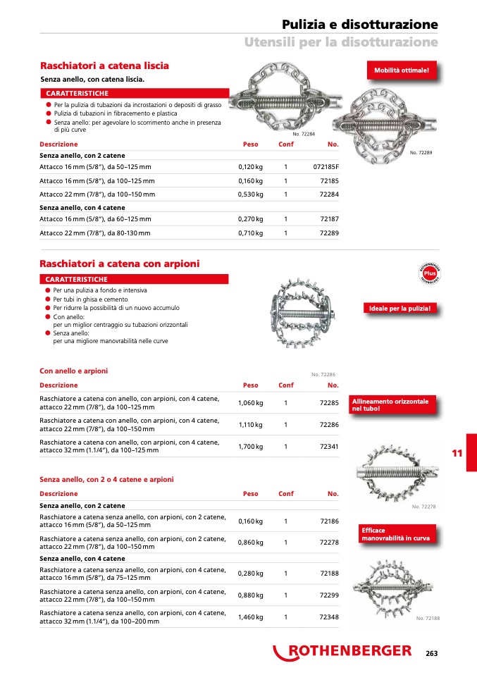 Raschiatore a catena senza anello, con arpioni, con 2 catene,