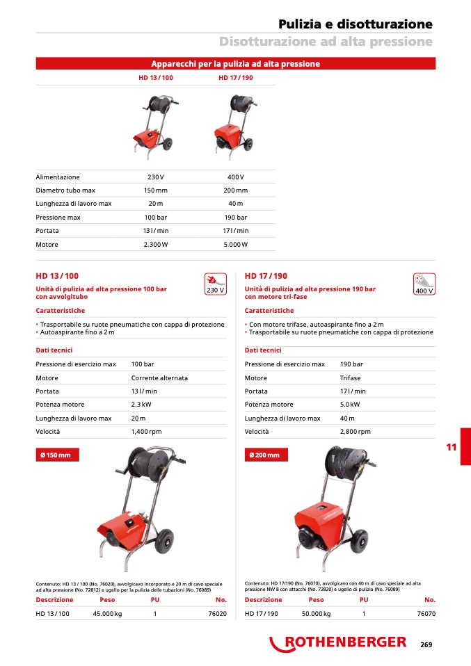 Contenuto: HD 13 / 100 (No. 76020), avvolgicavo incorporato e 20 m di cavo speciale