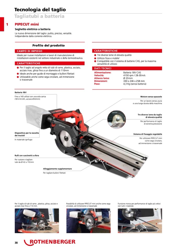 Possibilità di utilizzare PIPECUT mini anche come sega