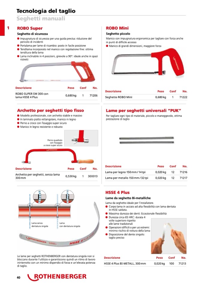 Le lame per seghetti ROTHENBERGER con dentatura singola non si