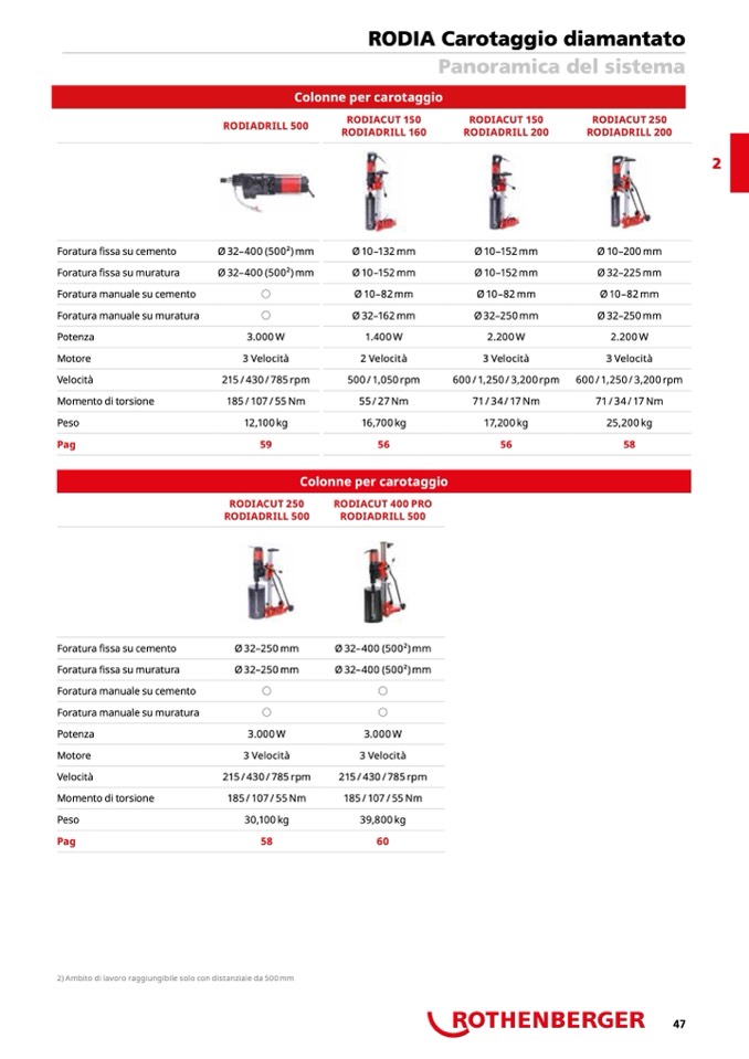 2) Ambito di lavoro raggiungibile solo con distanziale da 500 mm