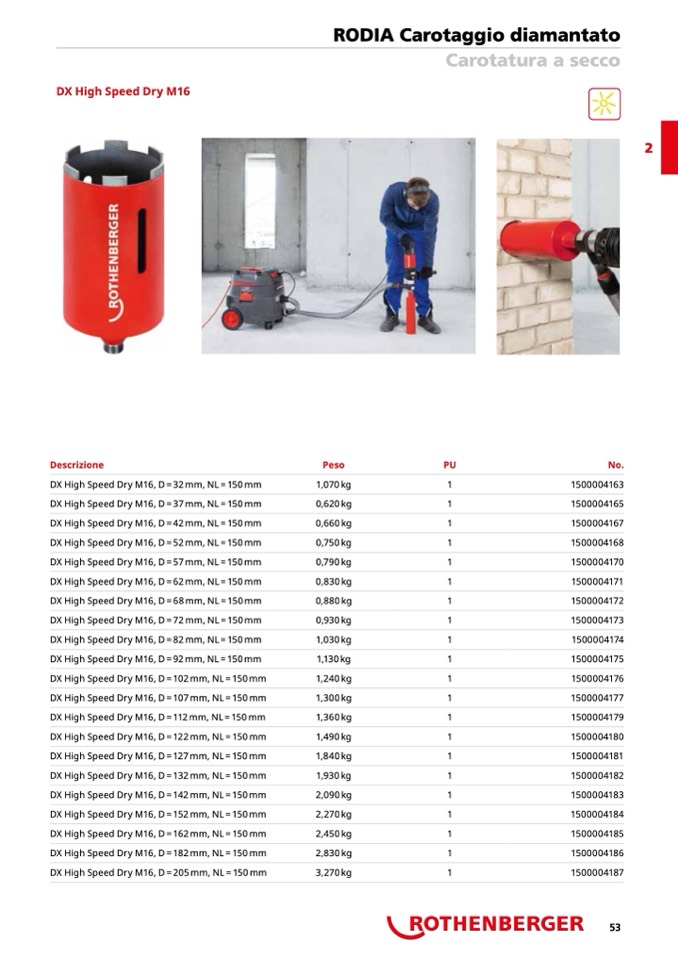 DX High Speed Dry M16, D = 57 mm, NL = 150 mm