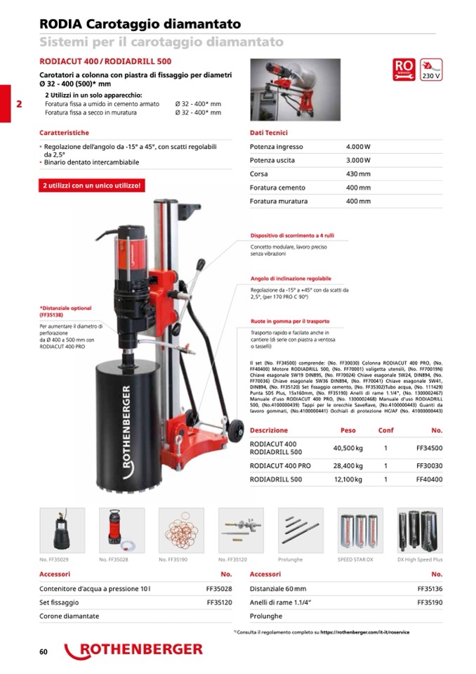 Il set (No. FF34500) comprende: (No. FF30030) Colonna RODIACUT 400 PRO, (No.