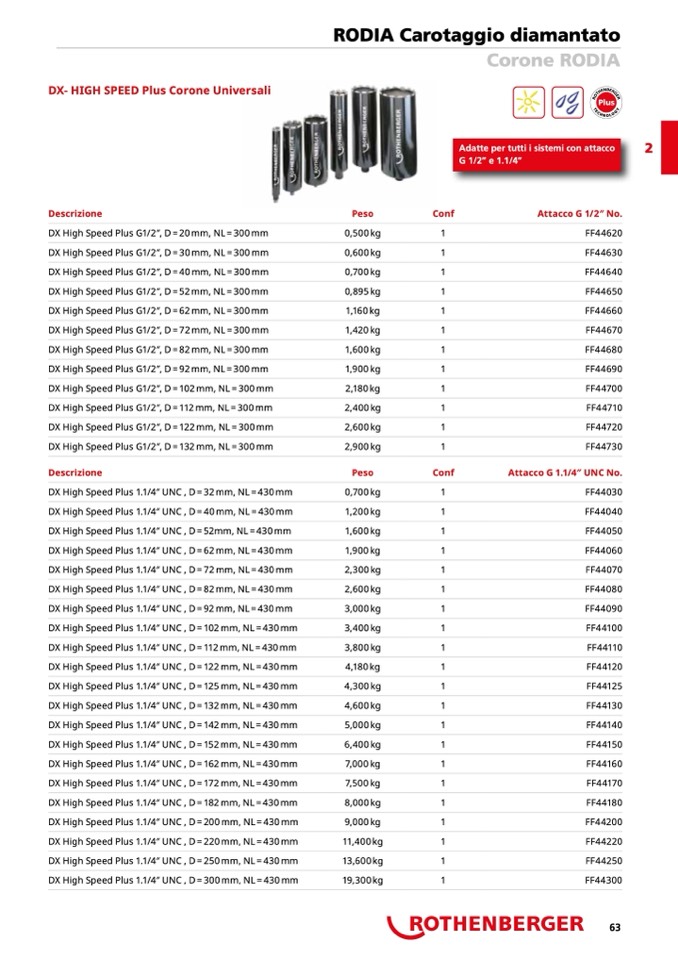 DX High Speed Plus 1.1/4′′ UNC , D = 62 mm, NL = 430 mm