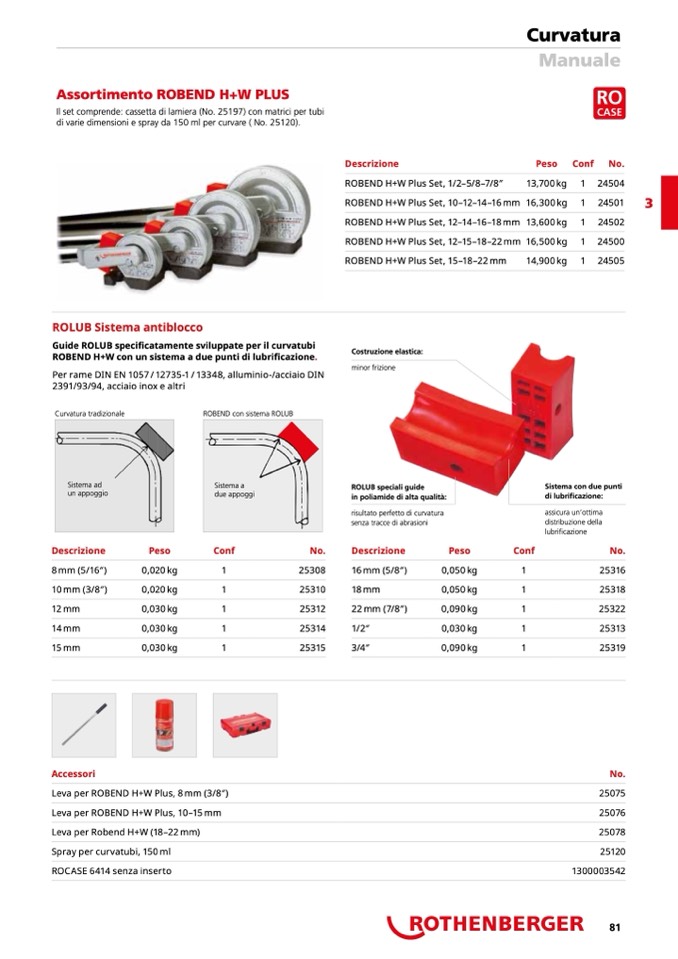 Il set comprende: cassetta di lamiera (No. 25197) con matrici per tubi