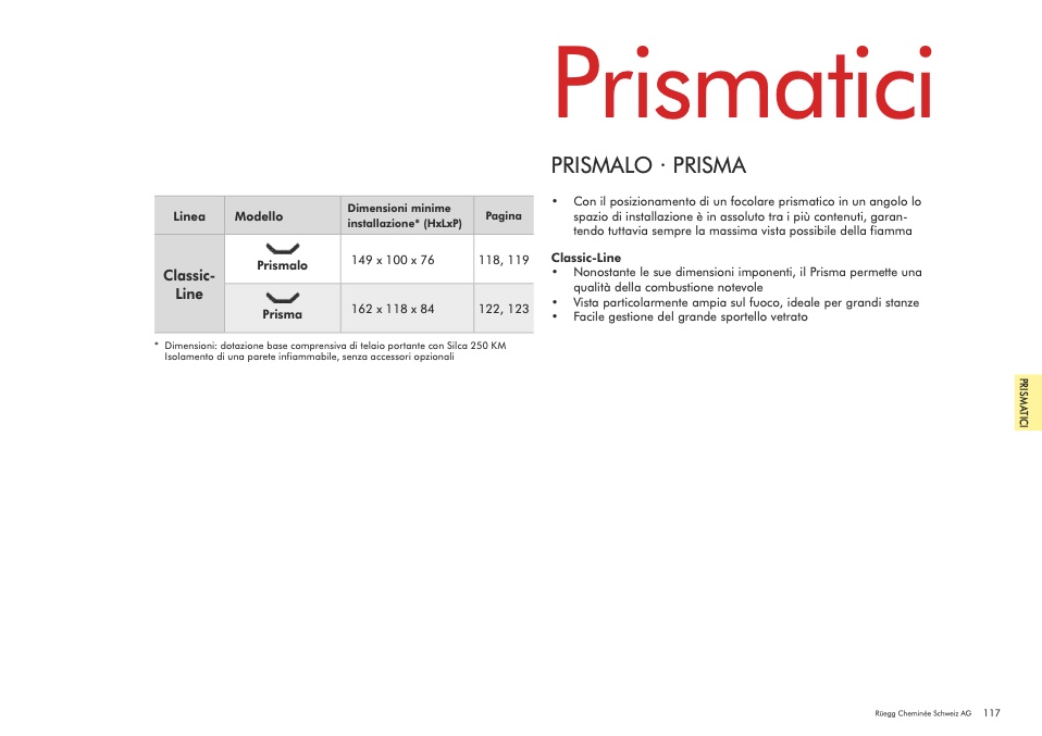 • Con il posizionamento di un focolare prismatico in un angolo lo