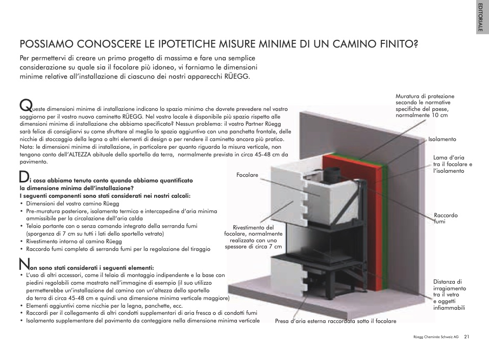 • Dimensioni del vostro camino Rüegg