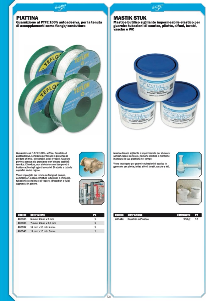 generale: per pilette, bidet, sifoni, lavabi, vasche e WC.