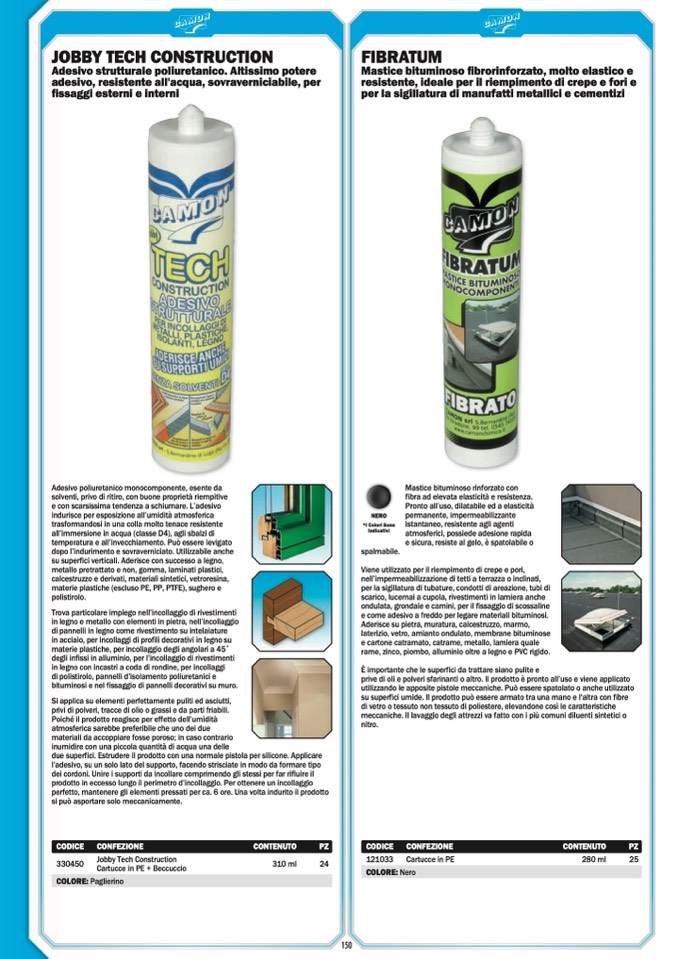 bituminosi e nel fissaggio di pannelli decorativi su muro.