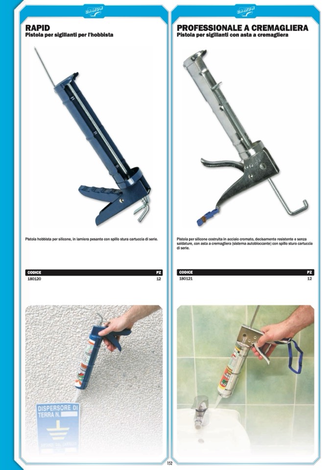 Pistola per silicone costruita in acciaio cromato, decisamente resistente e senza