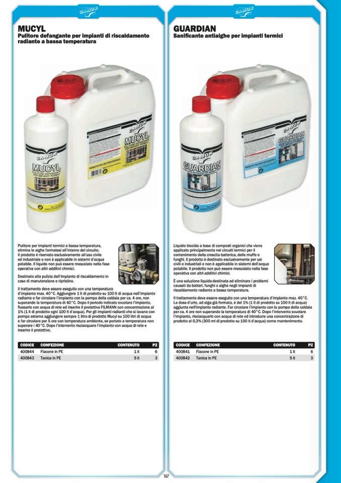d’impianto max. 40°C. Aggiungere 1 lt di prodotto su 100 lt di acqua nell’impianto