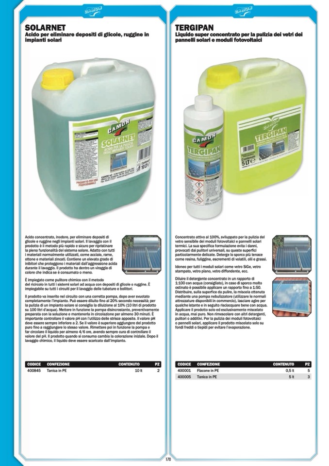 la pulizia di un impianto solare si consiglia la diluizione al 10% (10 litri di prodotto