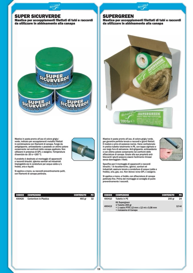 per garantire perfette tenute a raccordi e giunti filettati.