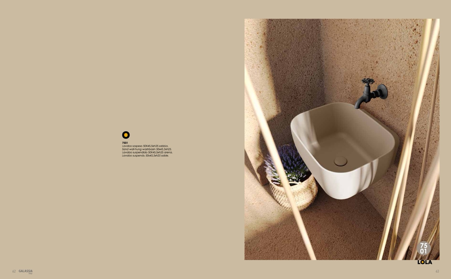 Lavabo sospeso 50X45,5xh25 sabbia.