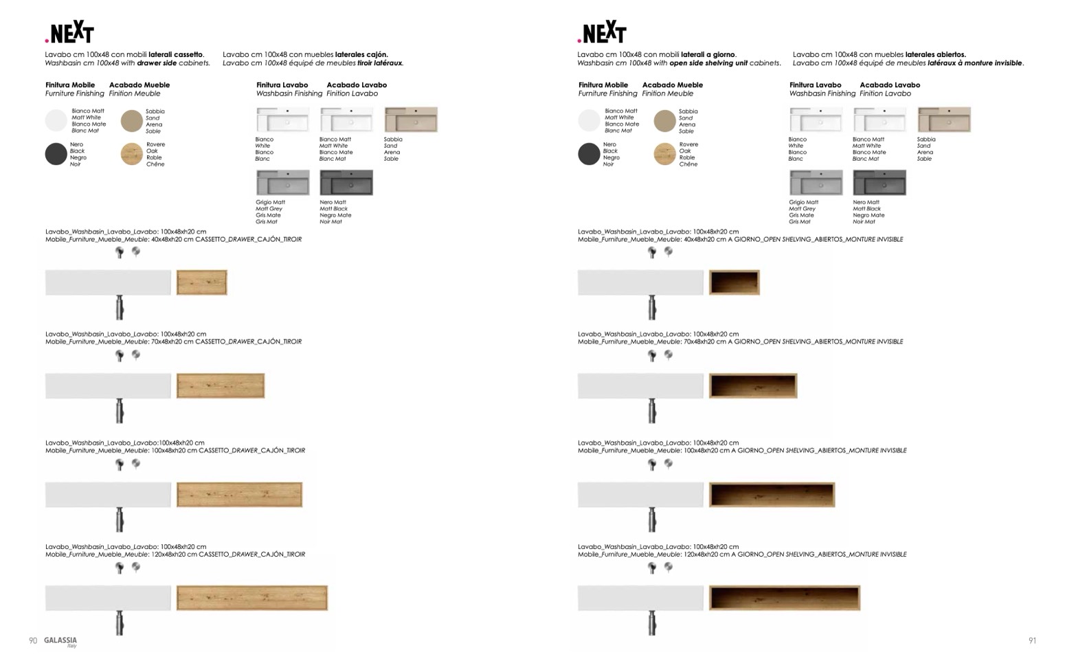 Washbasin cm 100x48 with open side shelving unit cabinets.