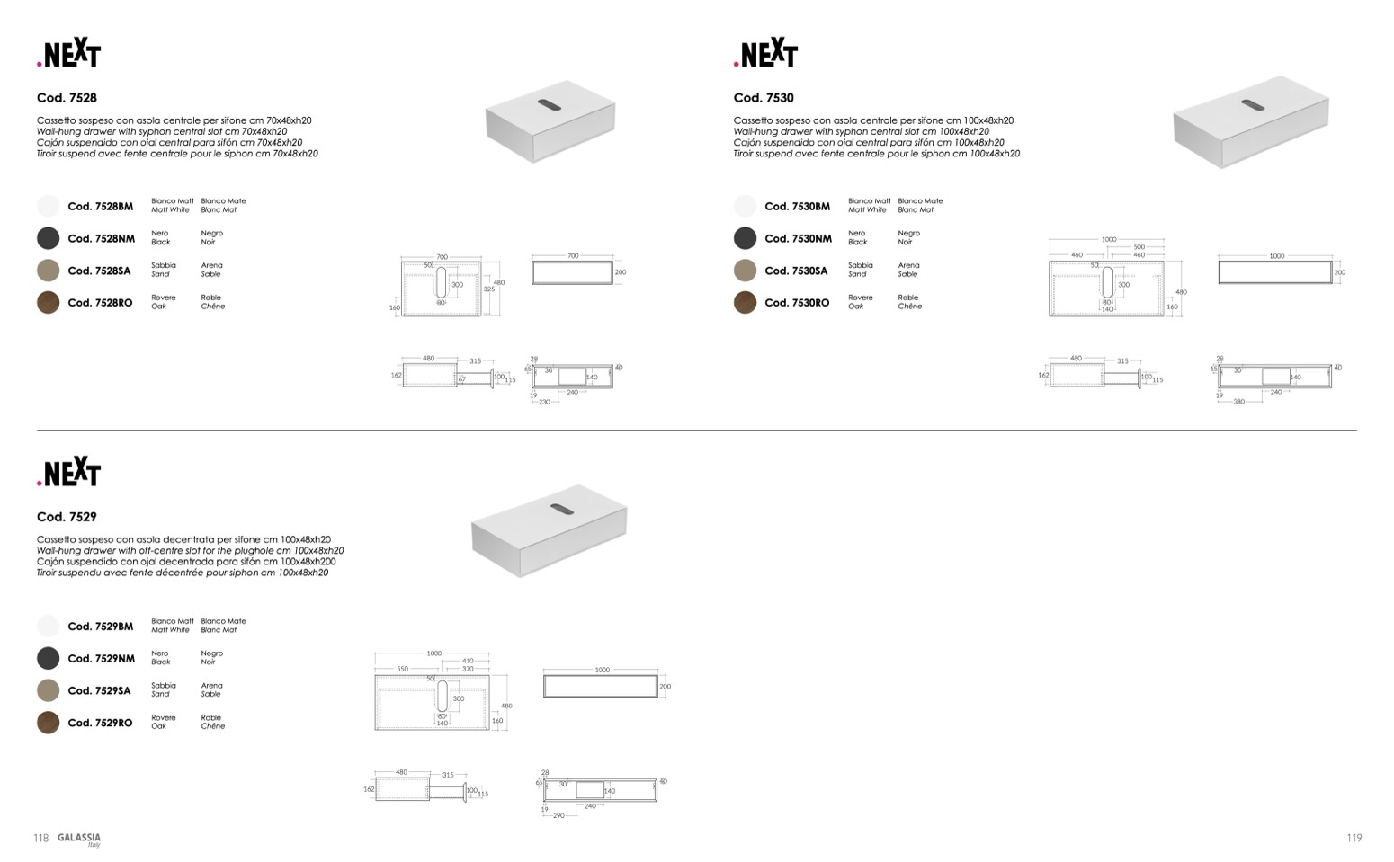 Wall-hung drawer with syphon central slot cm 100x48xh20