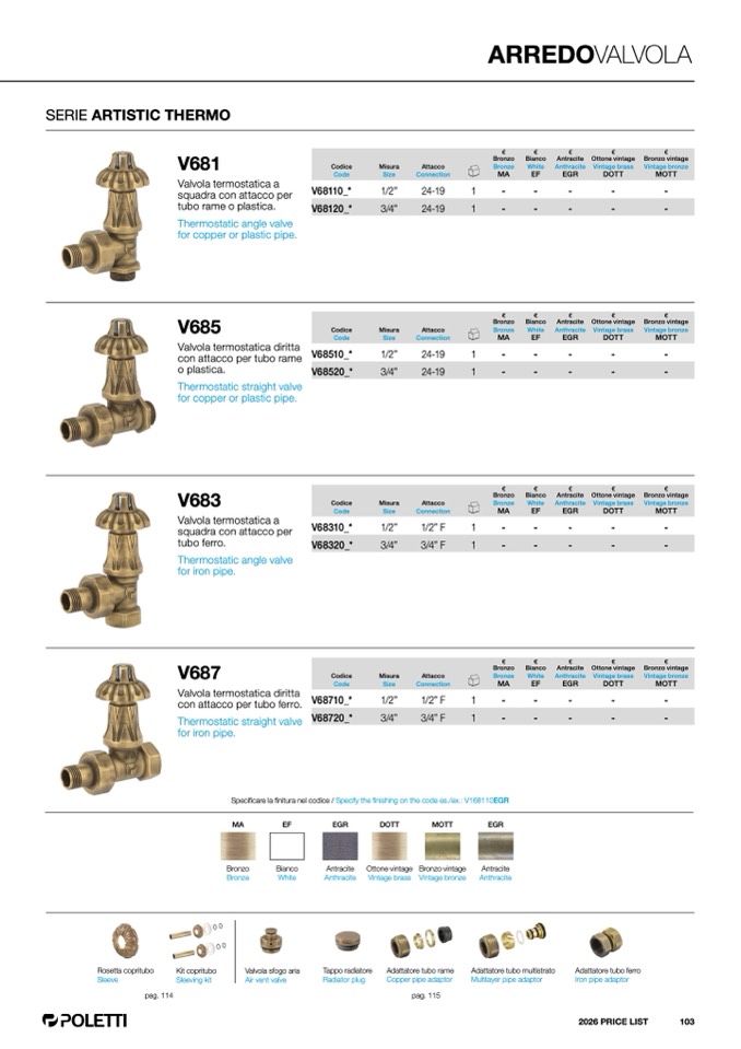 finitura nel codice / Specify the finishing on the code es./ex.: V168110EG