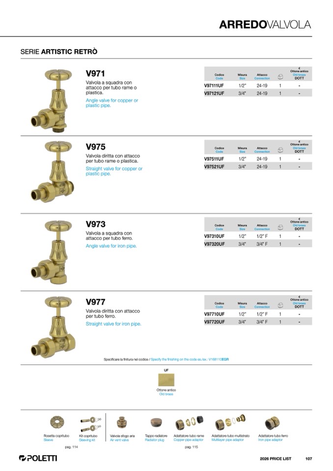 finitura nel codice / Specify the finishing on the code es./ex.: V168110EG