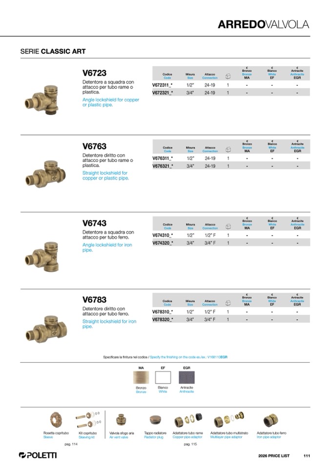 ficare la finitura nel codice / Specify the finishing on the code es./ex.: V168110EGR