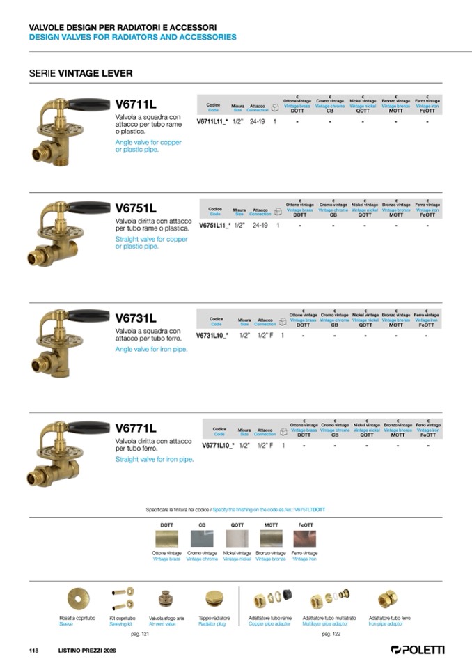 finitura nel codice / Specify the finishing on the code es./ex.: V675TLTDOTT