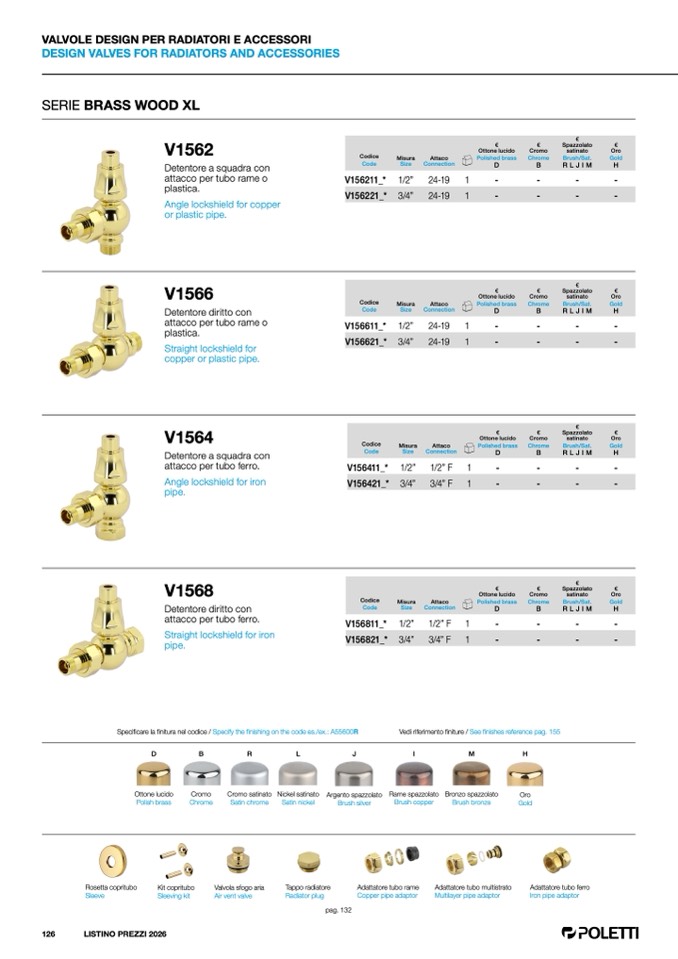 Vedi riferimento finiture / See finishes reference pag. 155