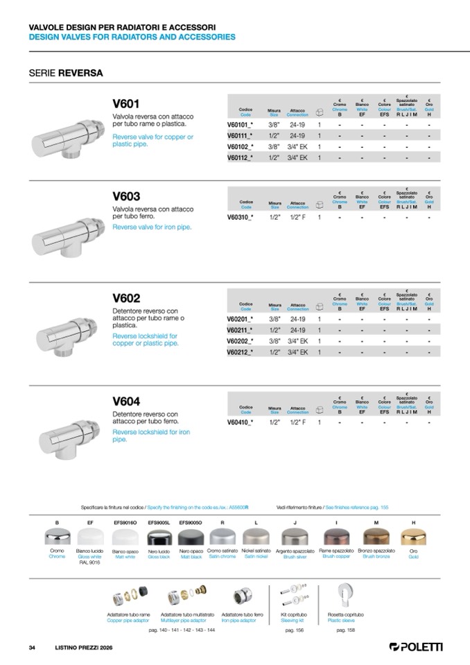 finitura nel codice / Specify the finishing on the code es./ex.: A55600R