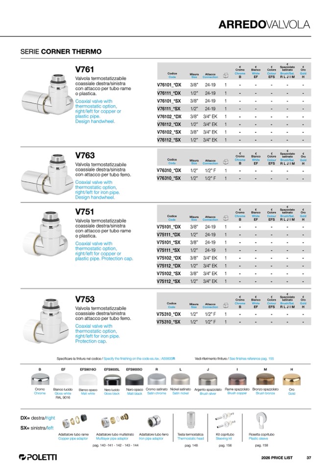 finitura nel codice / Specify the finishing on the code es./ex.: A55600R