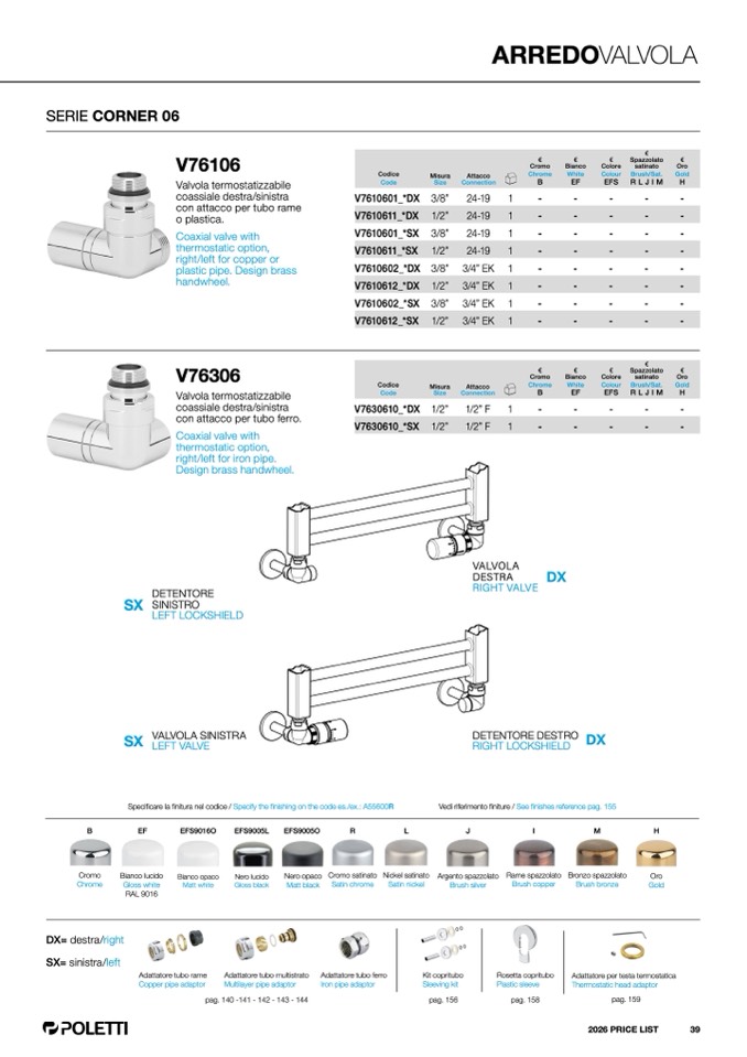finitura nel codice / Specify the finishing on the code es./ex.: A55600R