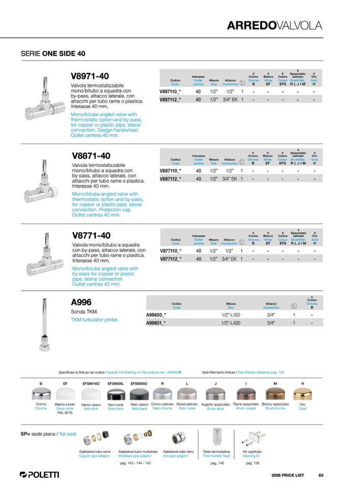 Specificare la finitura nel codice / Specify the finishing on the code es./ex.: A55600R
