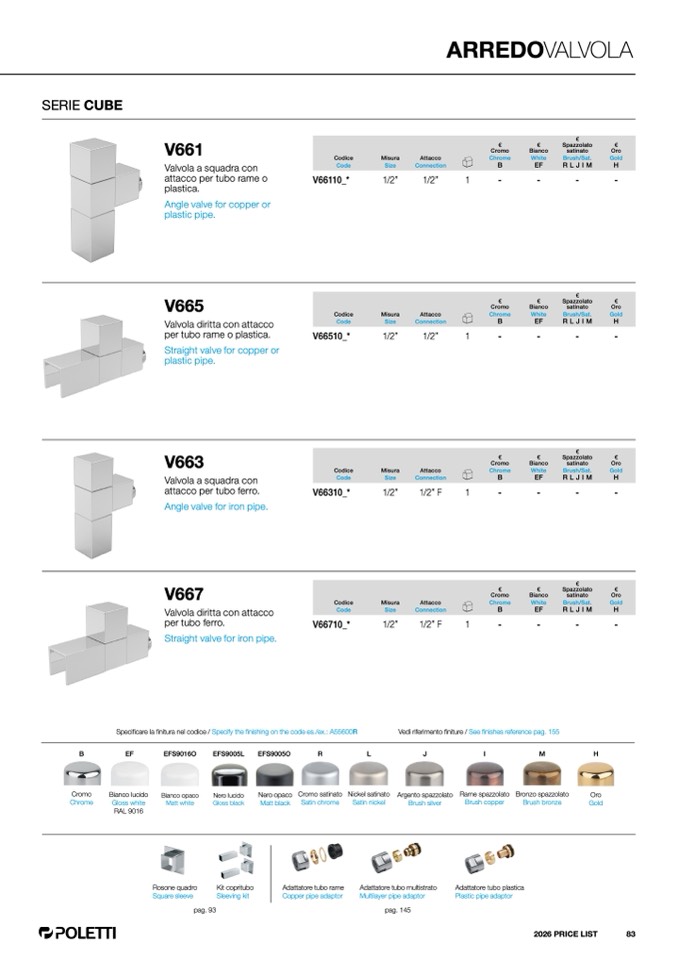 finitura nel codice / Specify the finishing on the code es./ex.: A55600R