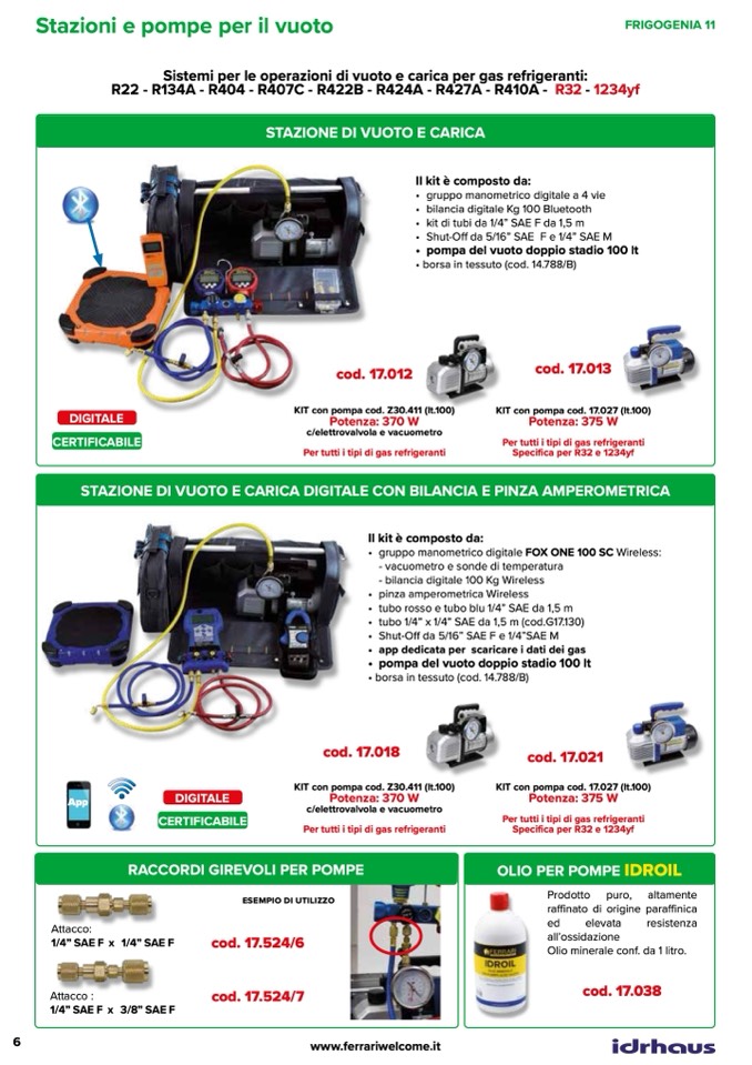 Per tutti i tipi di gas refrigeranti