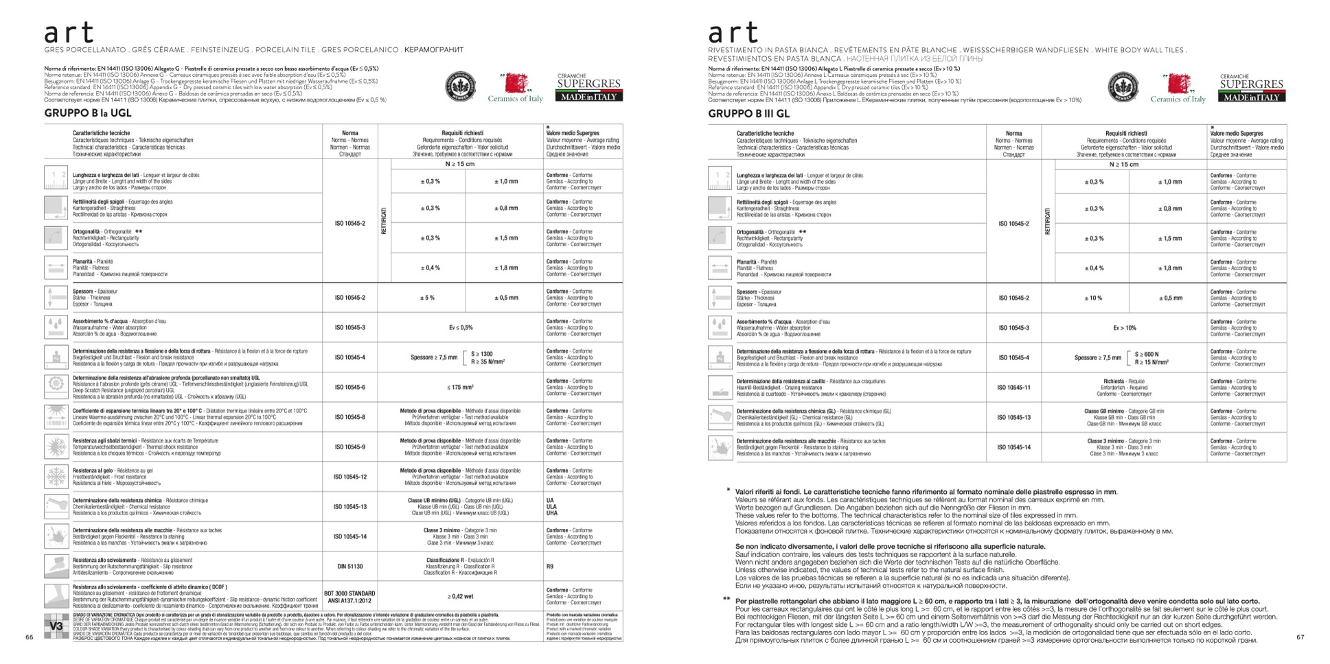 Norma di riferimento: EN 14411 (ISO 13006) Allegato G - Piastrelle di ceramica pressate a secco con basso assorbimento d’acqua (Ev