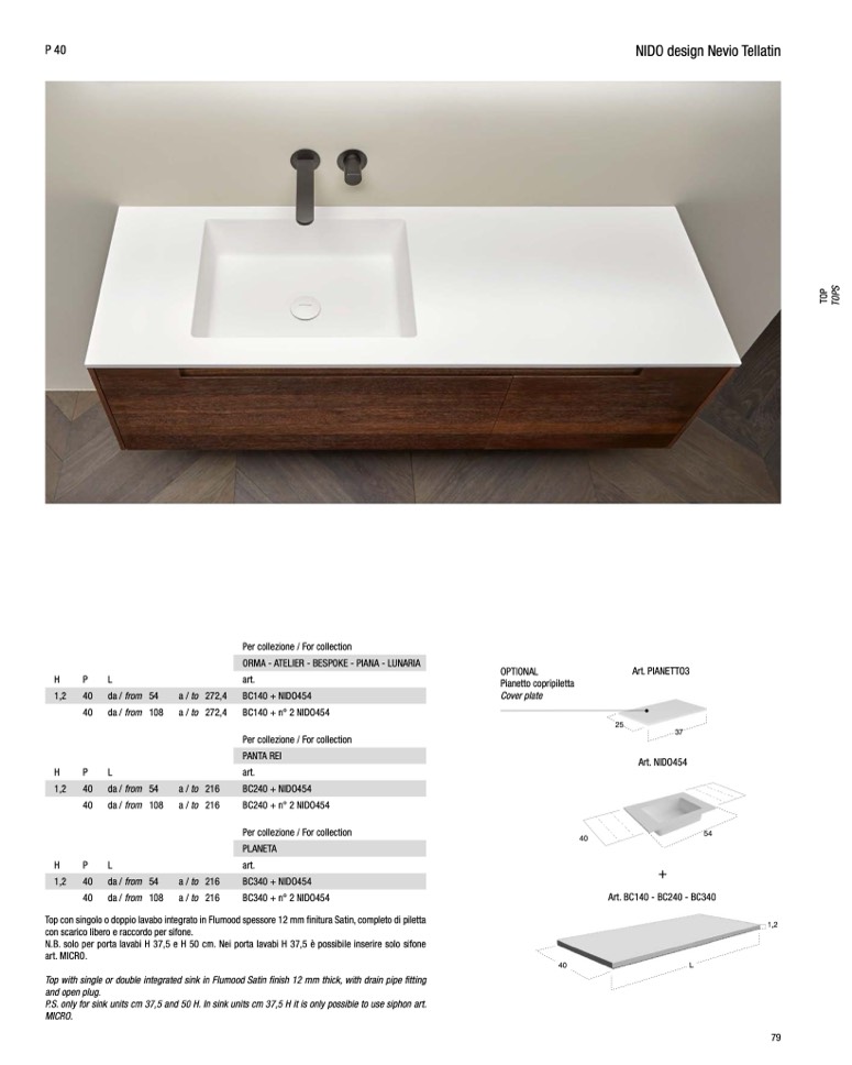 N.B. solo per porta lavabi H 37,5 e H 50 cm. Nei porta lavabi H 37,5 è possibile inserire solo sifone