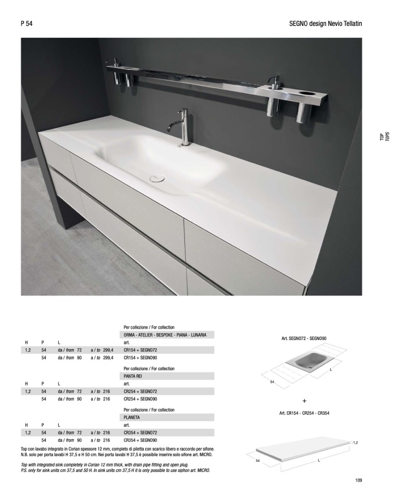 N.B. solo per porta lavabi H 37,5 e H 50 cm. Nei porta lavabi H 37,5 è possibile inserire solo sifone art. MICRO.