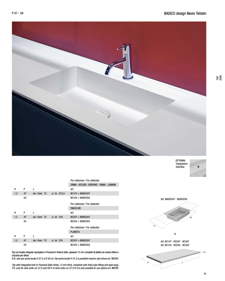 N.B. solo per porta lavabi H 37,5 e H 50 cm. Nei porta lavabi H 37,5 è possibile inserire solo sifone art. MICRO.