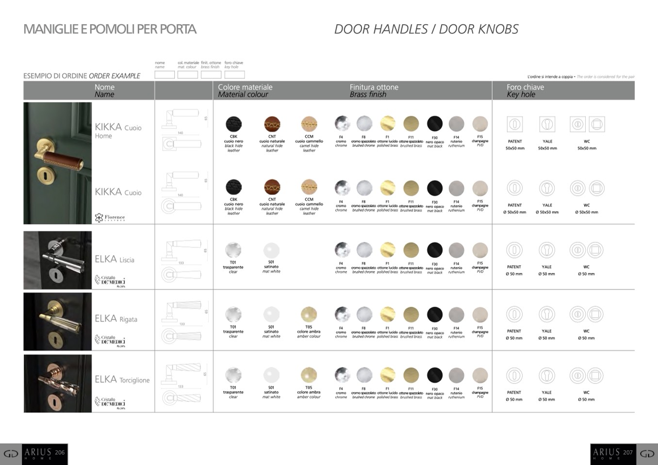 cromo cromo spazzolato ottone lucido ottone spazzolato nero opaco
