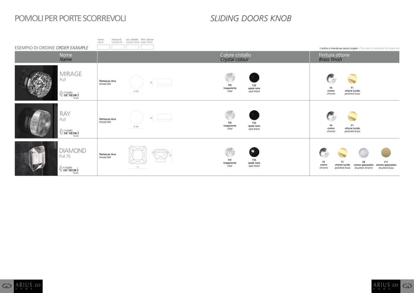 col. cristallo finit. ottone