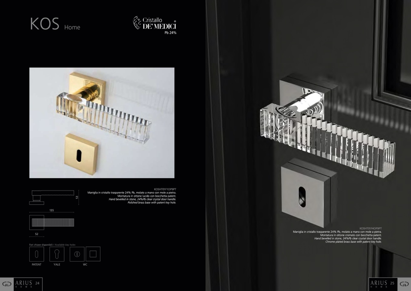Hand bevelled in stone, 24%Pb clear crystal door handle.