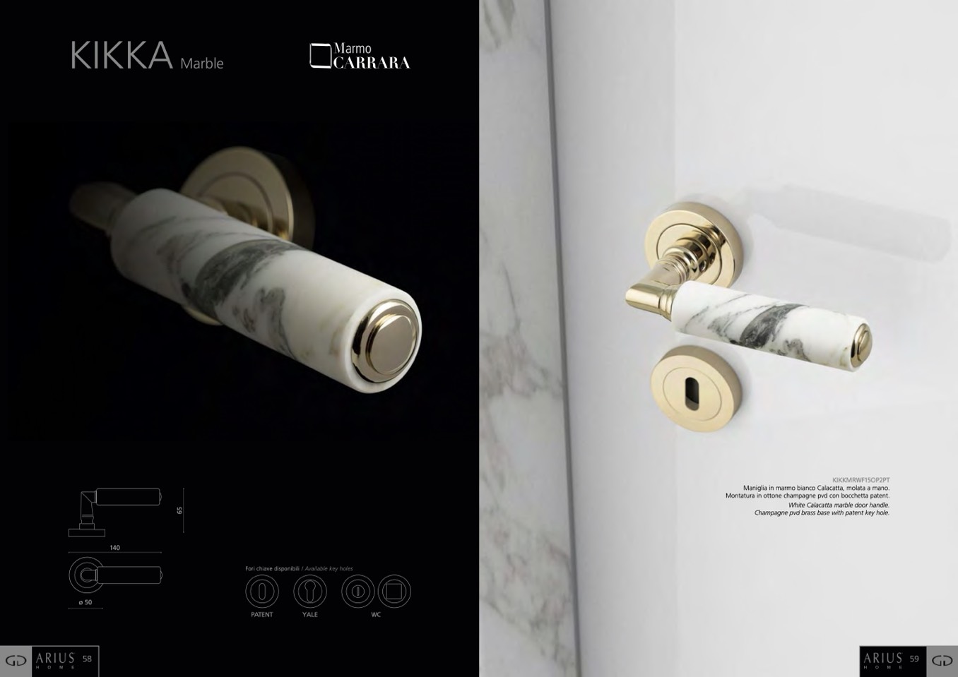 Maniglia in marmo bianco Calacatta, molata a mano.