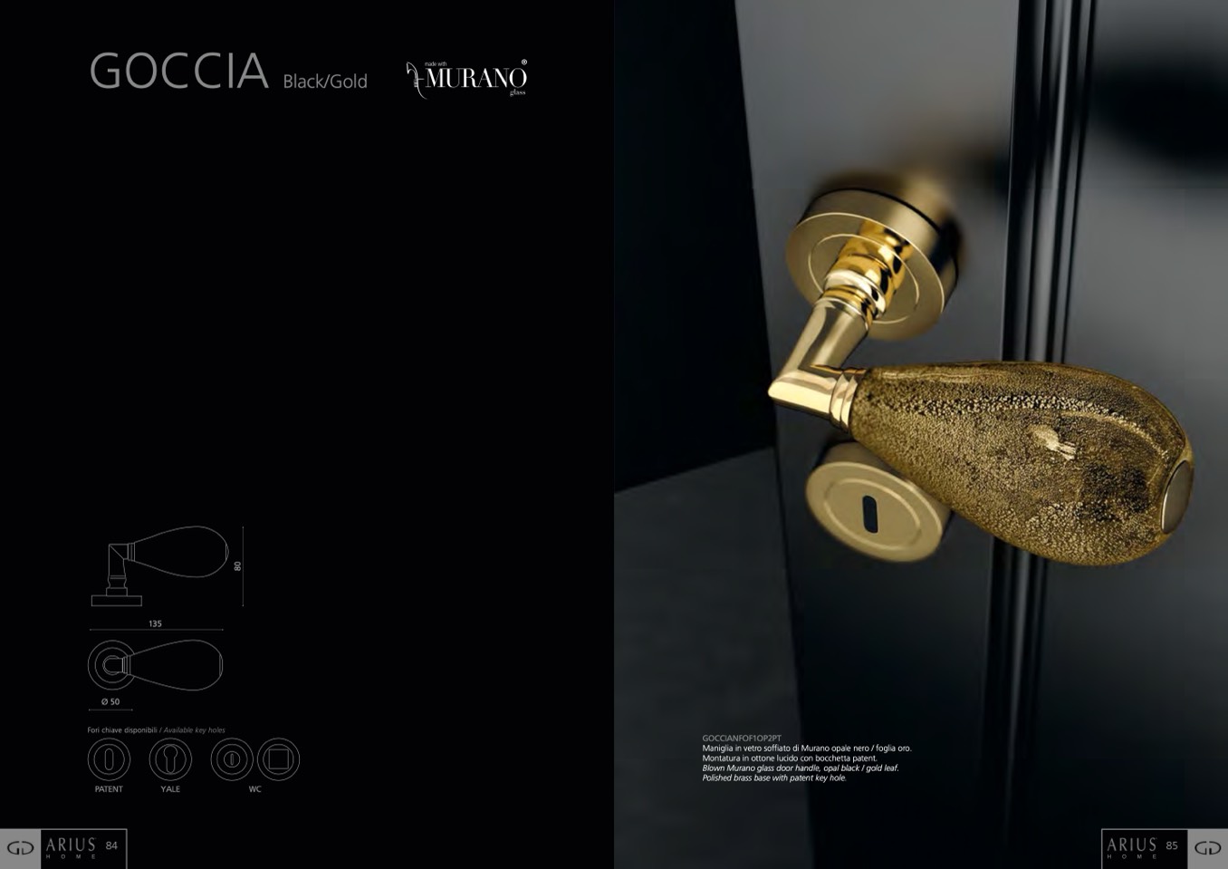 Maniglia in vetro soffiato di Murano opale nero / foglia oro.