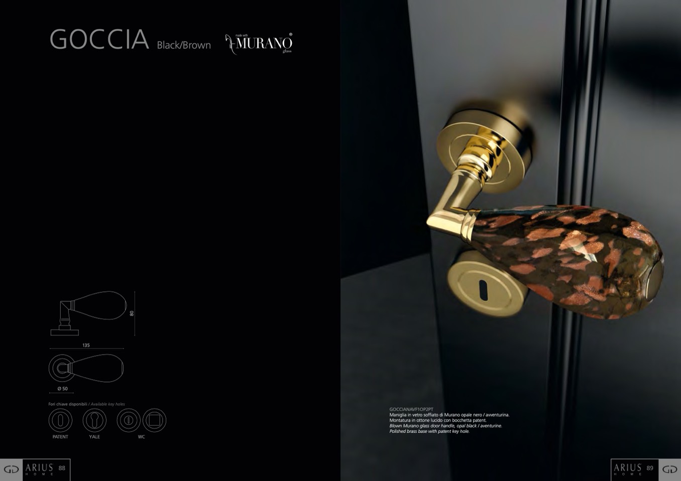Maniglia in vetro soffiato di Murano opale nero / avventurina.